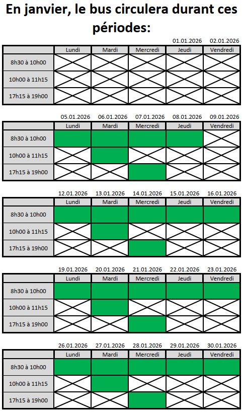 Zone desservie : Le bus opère uniquement dans les localités de Pontenet, Malleray et Bévilard.