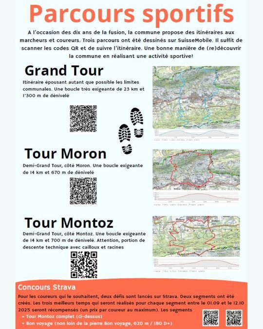 Par ailleurs, deux segments ont été tracés sur l’application Strava. Les trois meilleurs temps réalisés pour chaque segment entre le 01.09.2025 et le 12.10.2025 seront récompensés (un prix par coureur maximum). Le concours est également ouvert aux externes à Valbirse.